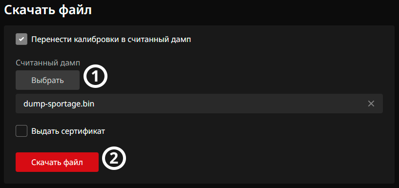 Другой вариант — воспользоваться утилитой сразу при скачивании нужной тюнинг-прошивки. В этом случае достаточно загрузить сток в формате .bin и нажать «Скачать файл».